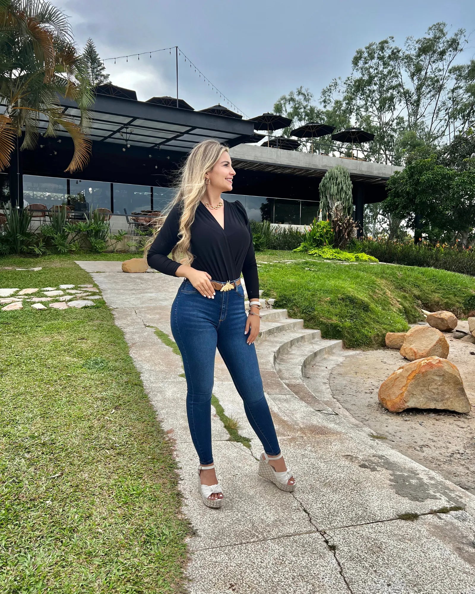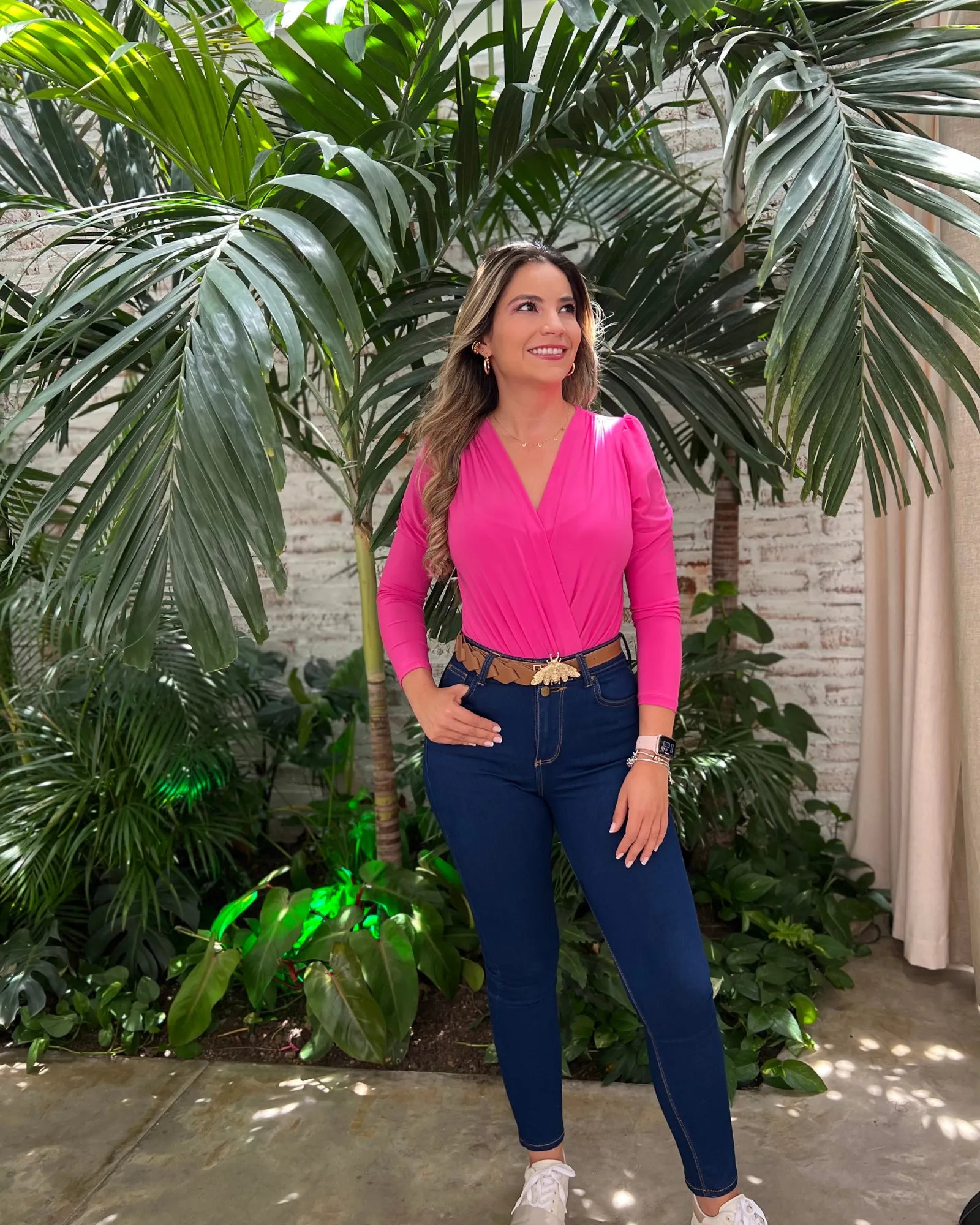 Este body basico manga larga escote cruzado es ideal para combinar con diferentes prendas diseñado en una tela licrada, ideal para utilizar casual o formal, úsala con Jean, faldas, pantalones