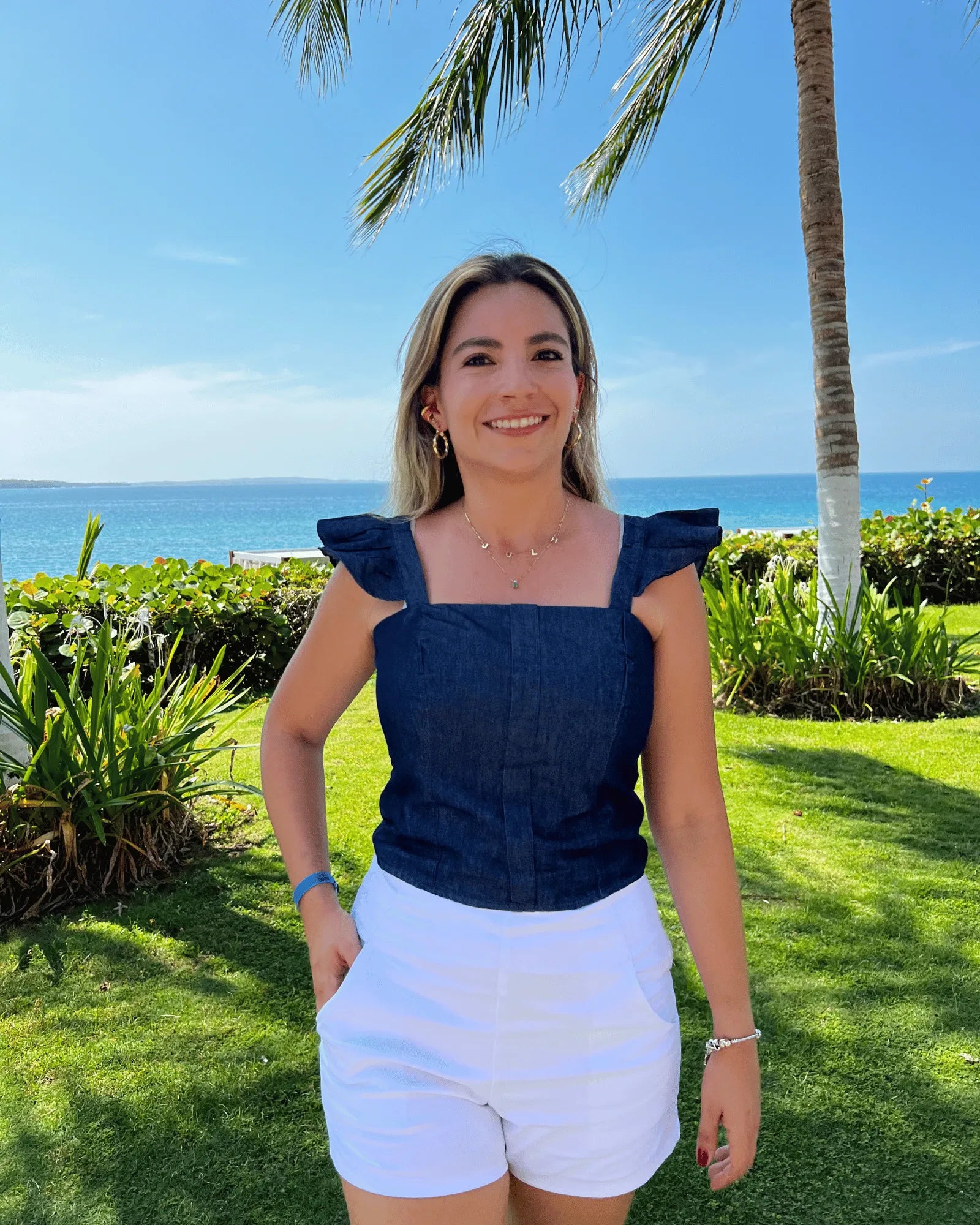 Top en índigo encauchado en espalda para una horma que se adapta perfecto al cuerpo con golas en hombro